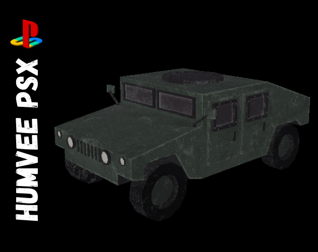This asset pack includes two low-poly, PS1-style military Humvee vehicles!